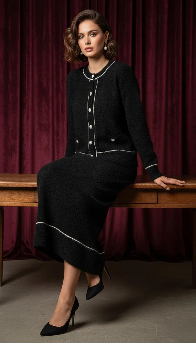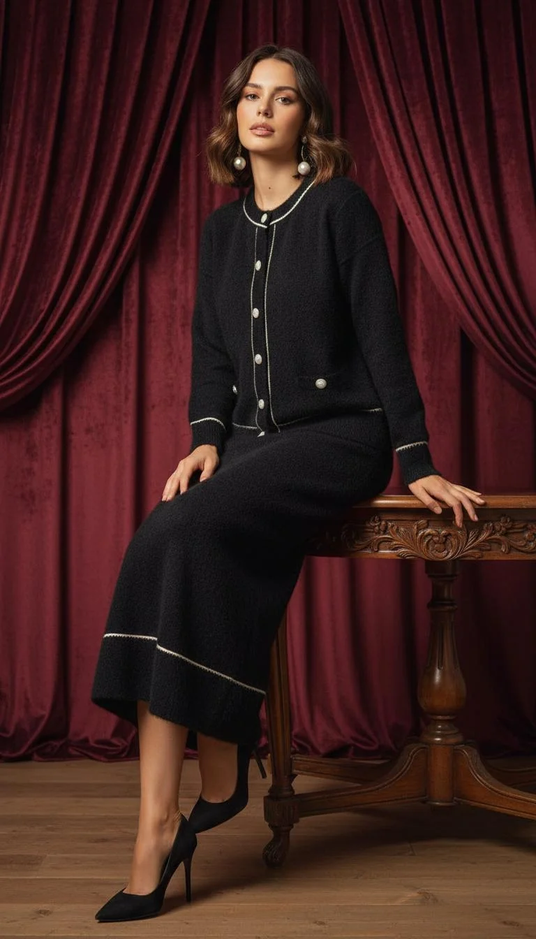 Angora İncili Siyah Takım