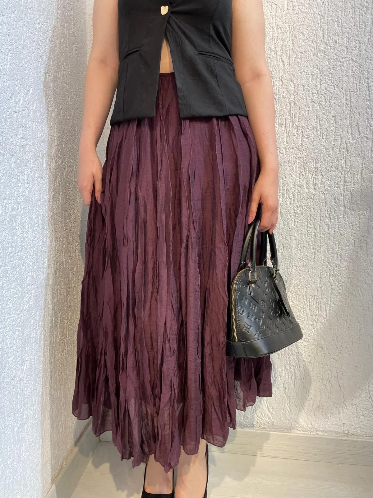 Siyah Lize Kırışık Etek