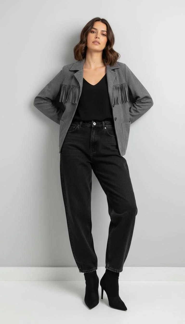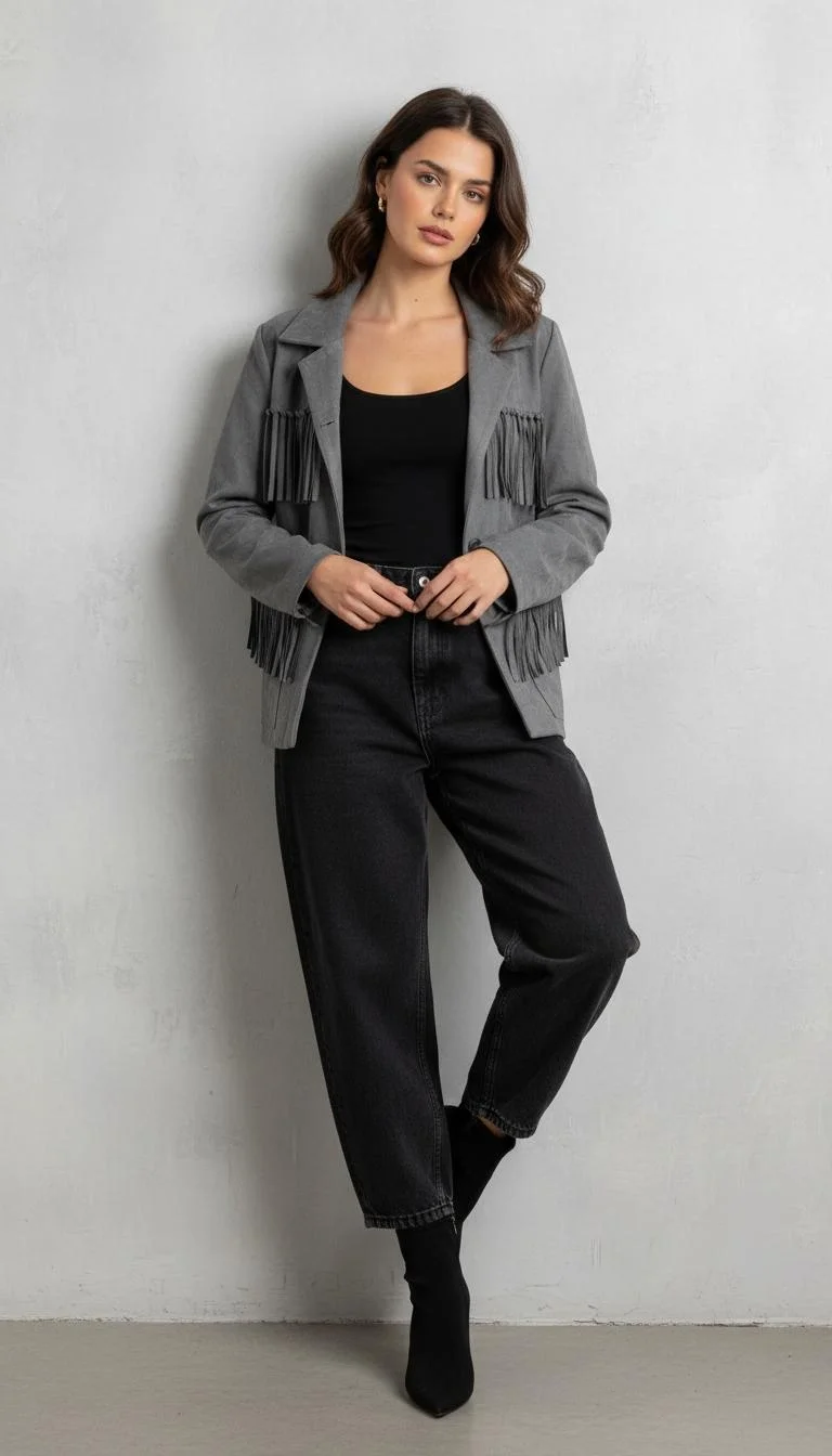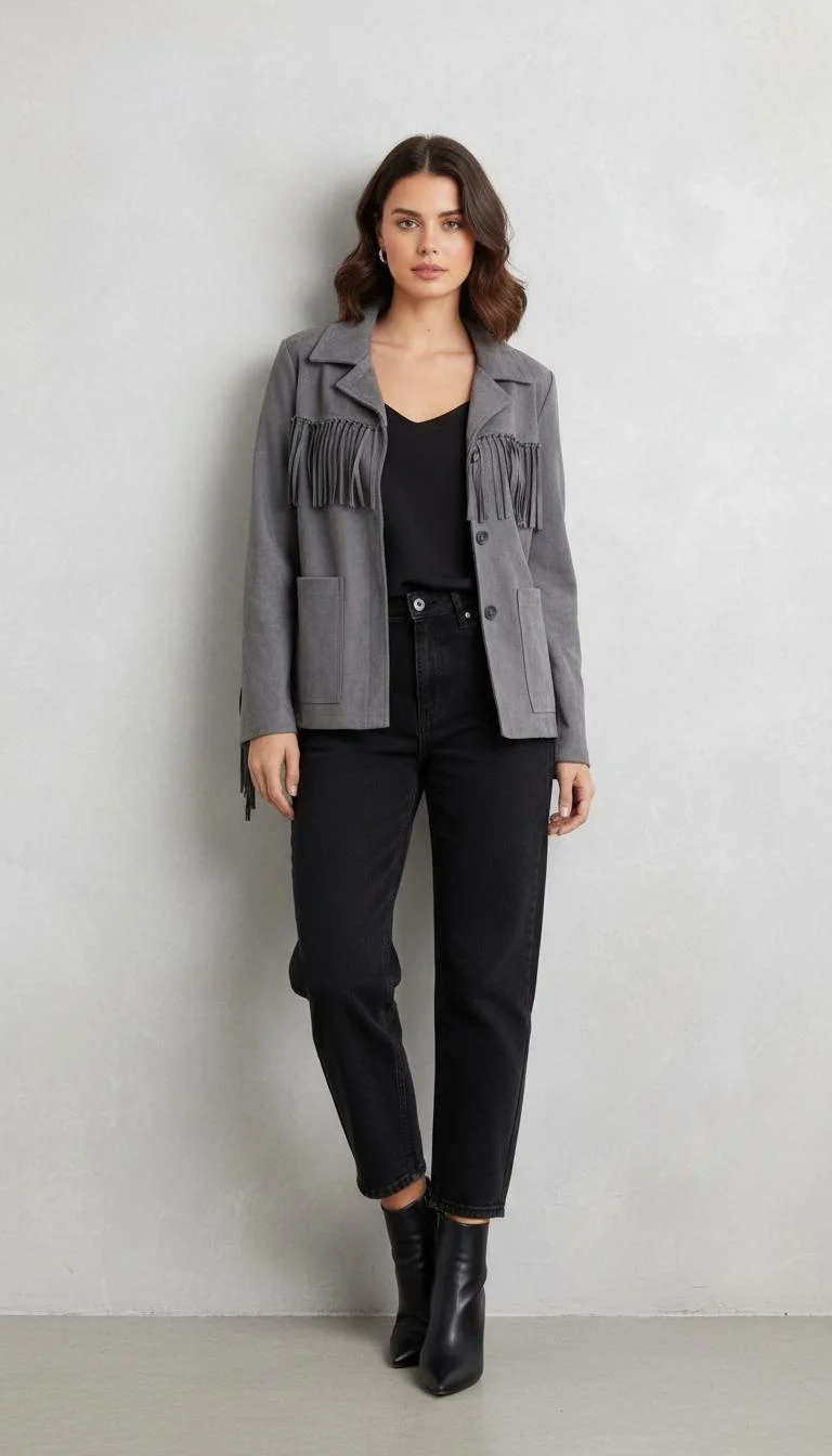 Püsküllü Süet Gri Ceket