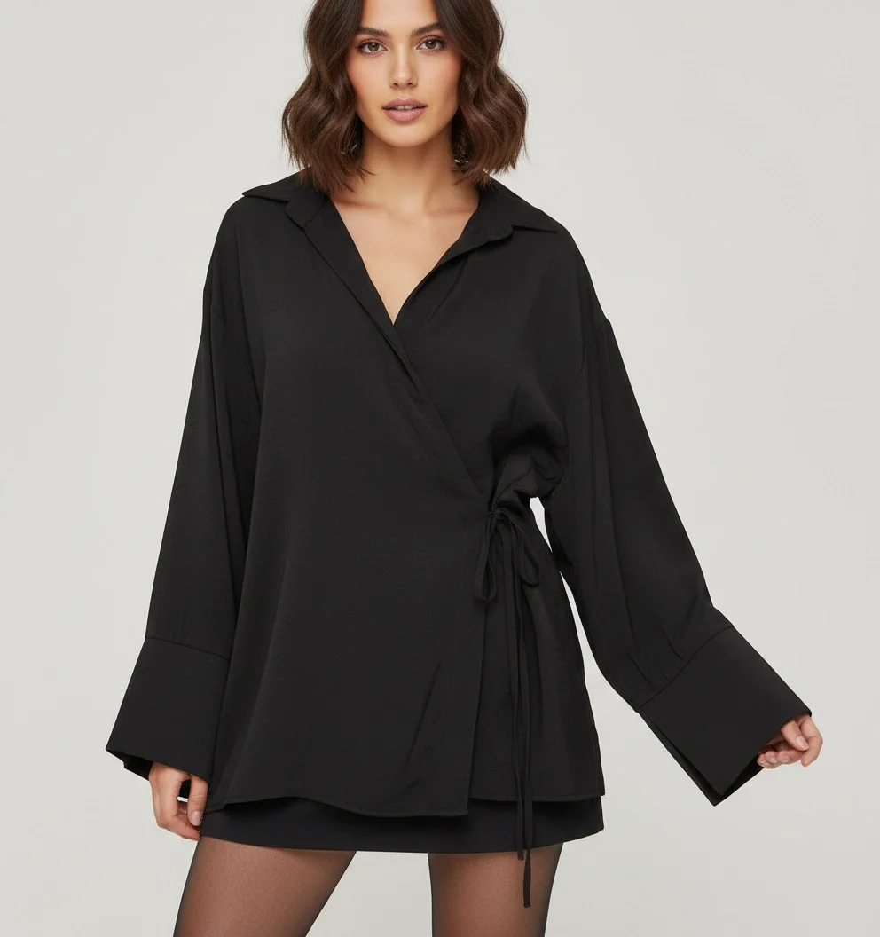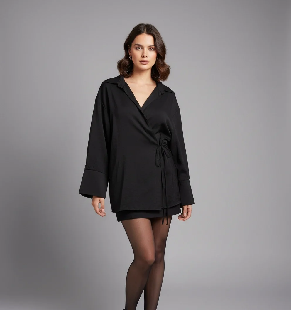 Ürün geniş kalıp olmakla birlikte ip detayı ile bedene göre ayarlanabilir