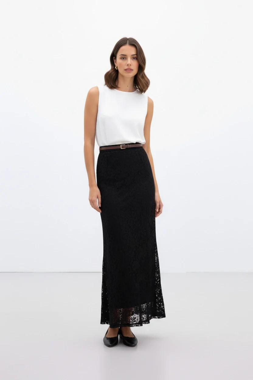 Siyah Maxi Dantel Etek
