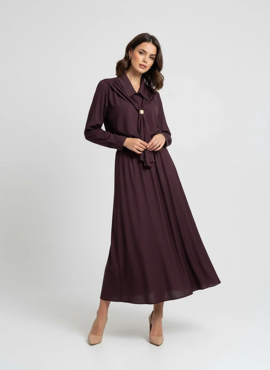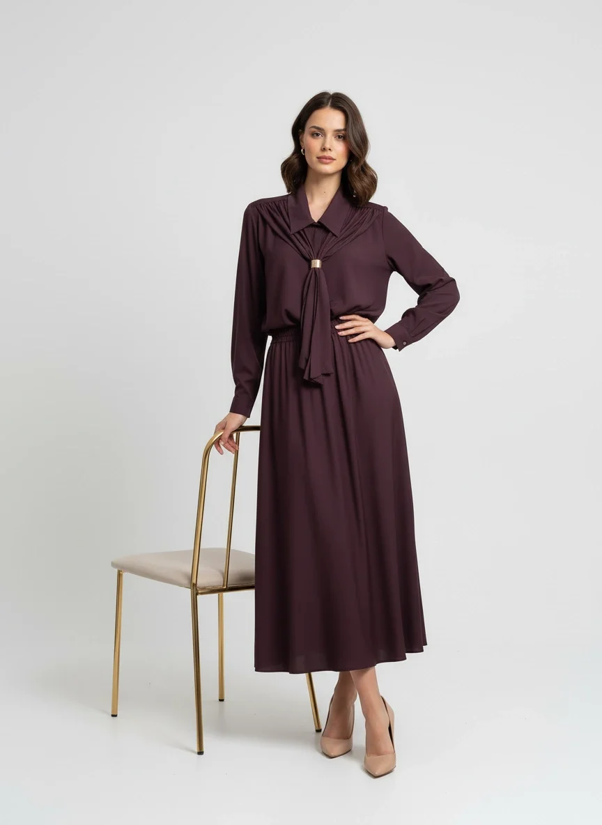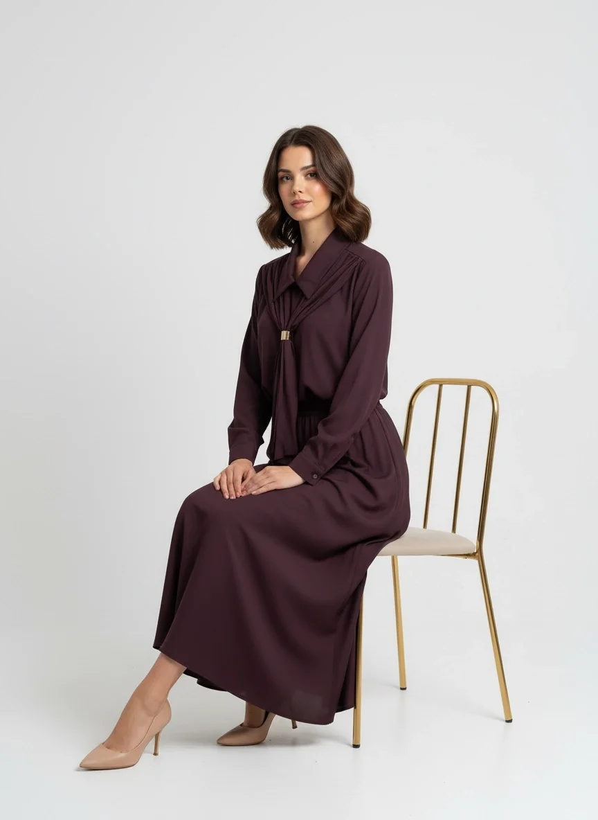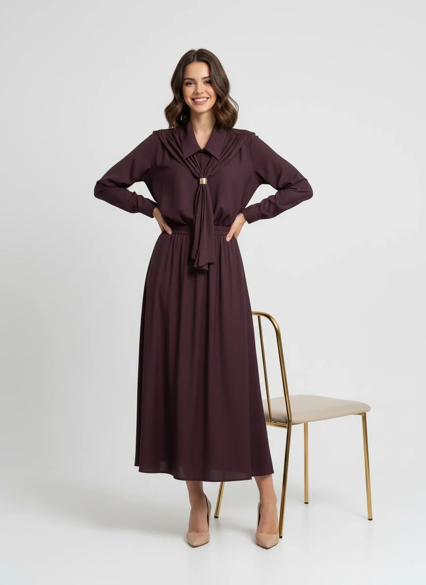 Yaka Detaylı Premium Mürdüm Takım