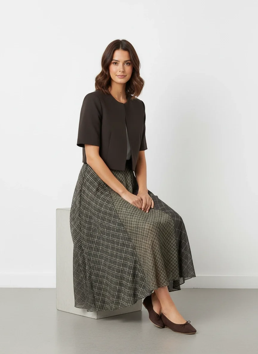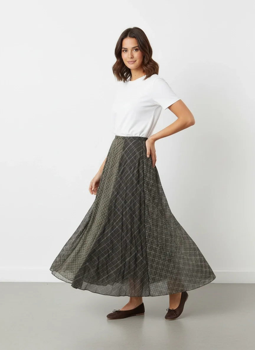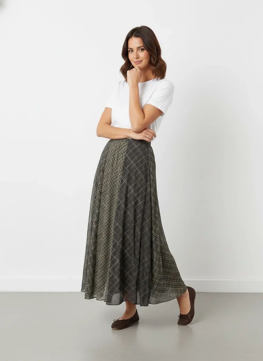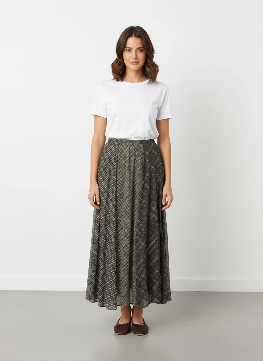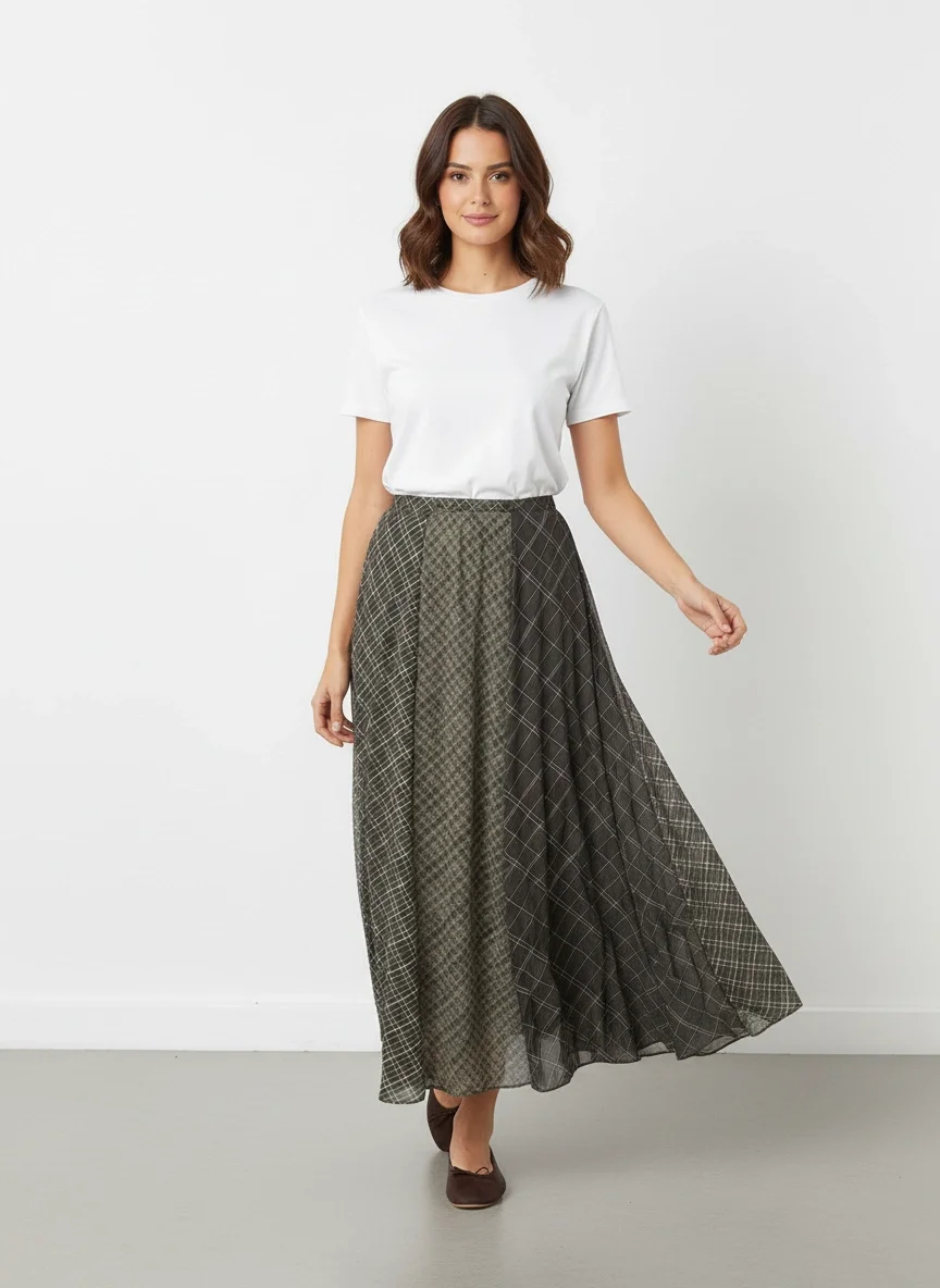 Yeşil Parçalı Maxi Etek