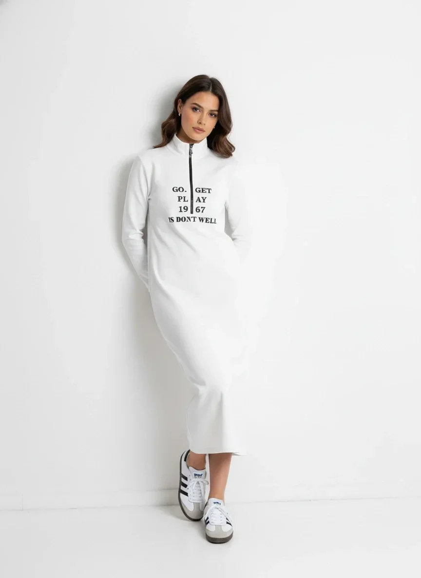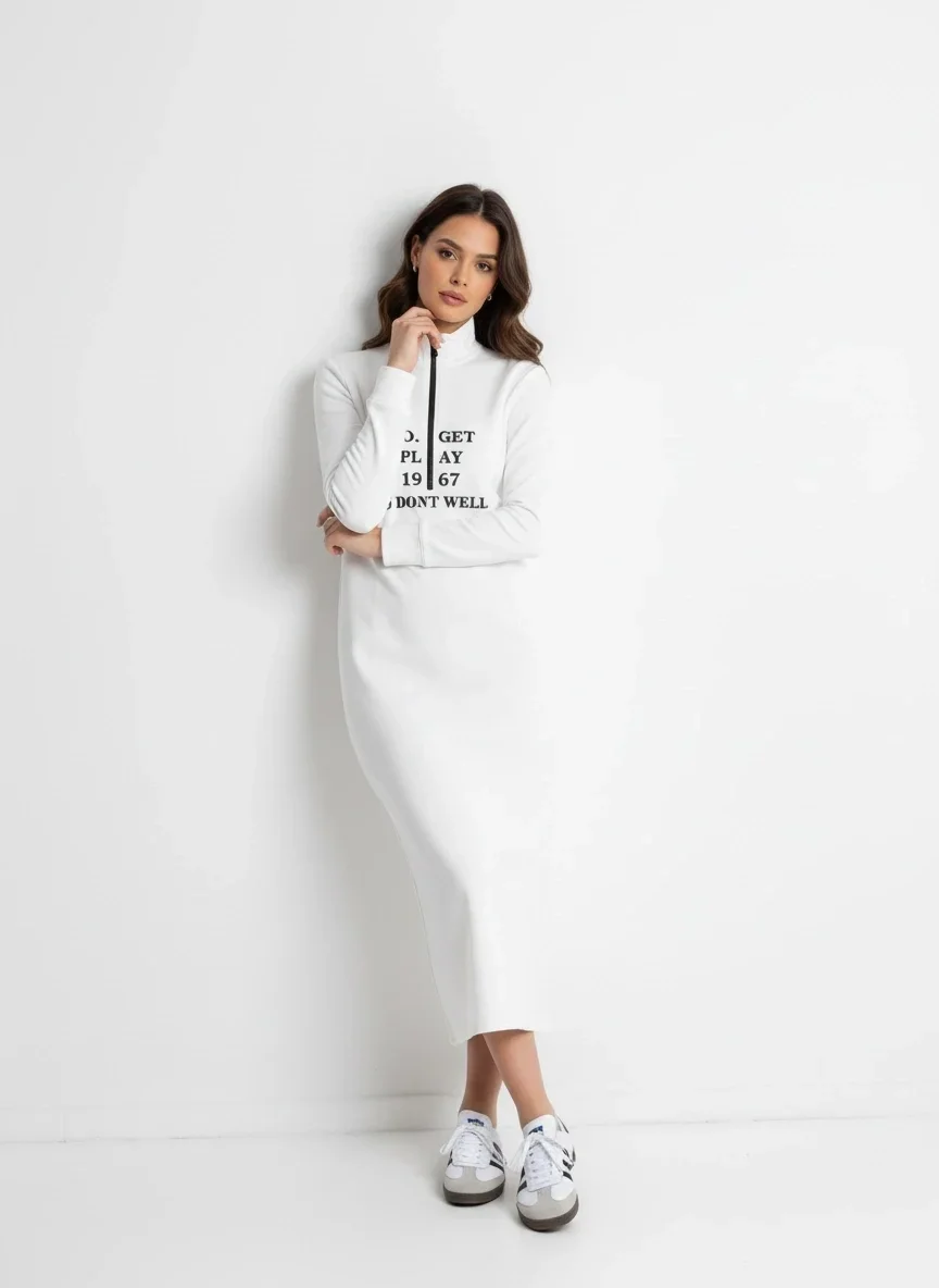 Yumuşak Kumaş Beyaz Spor Elbise